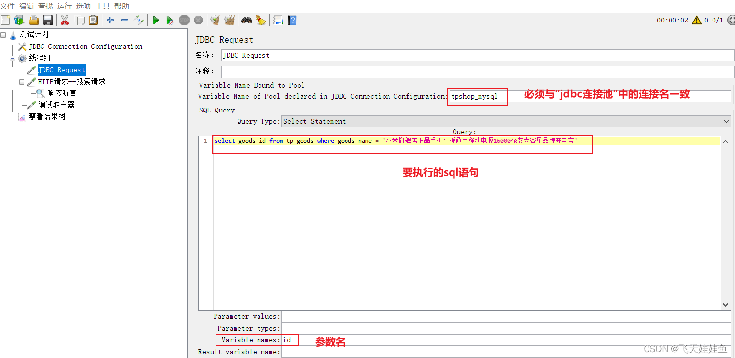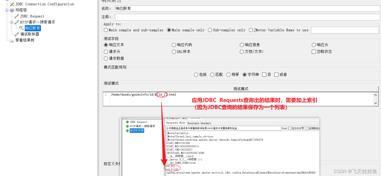 注意:应用JDBC Requests查询出的结果时,需要加上索引(因为JDBC查询的结果保存为一个列表)