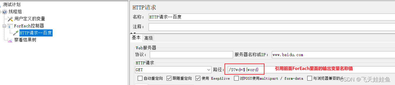 - 添加HTTP请求,用来访问百度