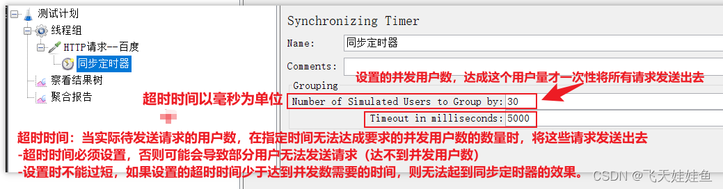 在JMeter中叫做同步定时器,在其他软件中又叫做集合点(比如lr)。收到请求后保证大量的请求在同一时间进行发送,形成绝对的并发量;