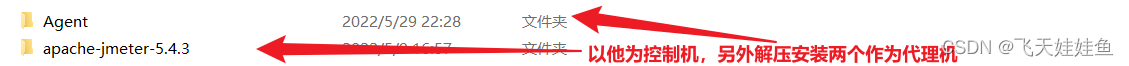 原理:JMeter分布式测试时,选择其中一台作为控制机(controller),其他机器作为代理(Agent),即一个控制机加上多个代理机组成。