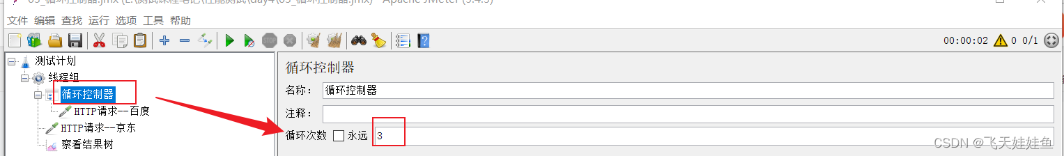 添加方式:测试计划-->线程组-->(右键添加)逻辑控制器-->循环控制器