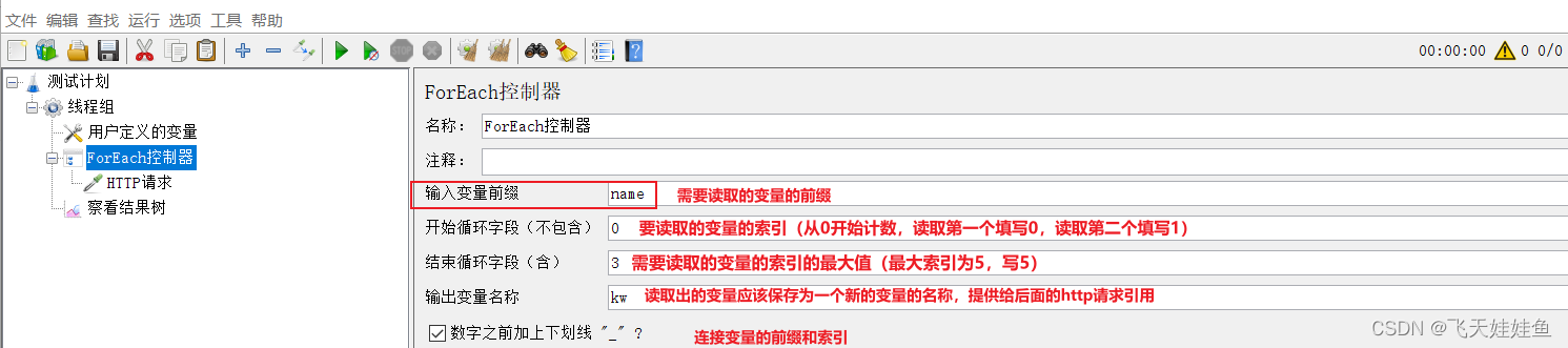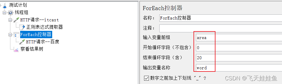 添加方式:测试计划-->线程组-->(右键添加)逻辑控制器-->foreach控制器