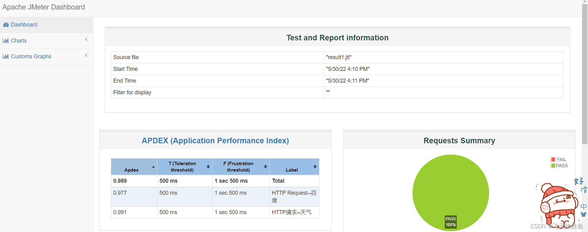 等待脚本执行完成后,进行 report 文件夹下,打开 index.html ,可看到性能测试的详细数据统计。