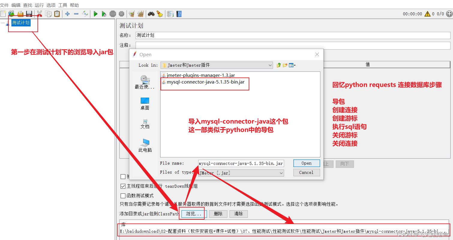 方法1:在测试计划下方,点击浏览添加JDBC的jar包;