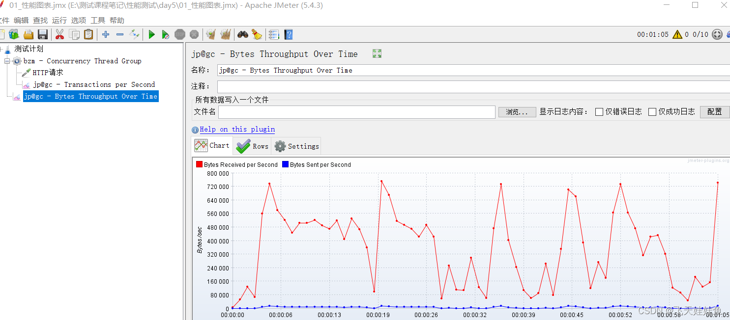 - Bytes Through Over Time:运行过程中的传输速率