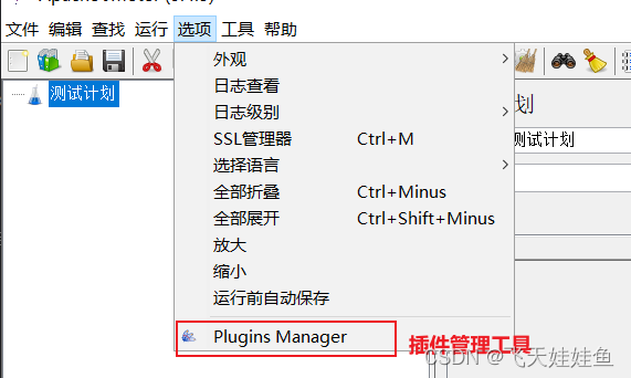 - 重启Jmeter,可以在选项下看到Plugins Manager选项