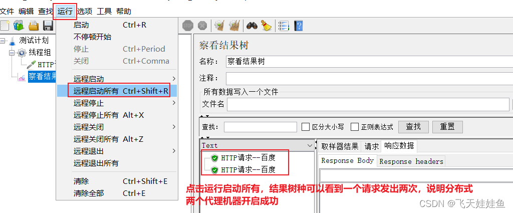 - 启动时,点击“运行”--“启动远程所有”控制代理机的运行