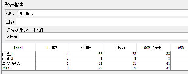 事务控制器不会对其子节点的执行逻辑产生影响,其效果为在监听器生成统计的时,以一个单独的统计点来统计,可各项指标为控制器子节点的指标之和。