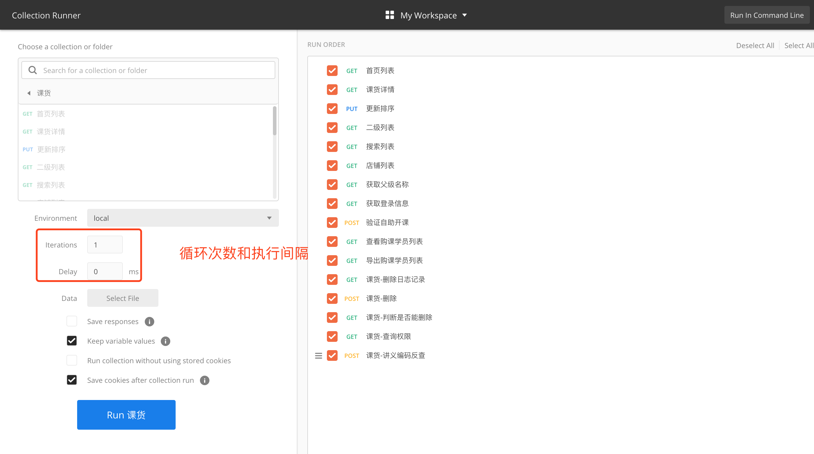 点击集合的Run按钮