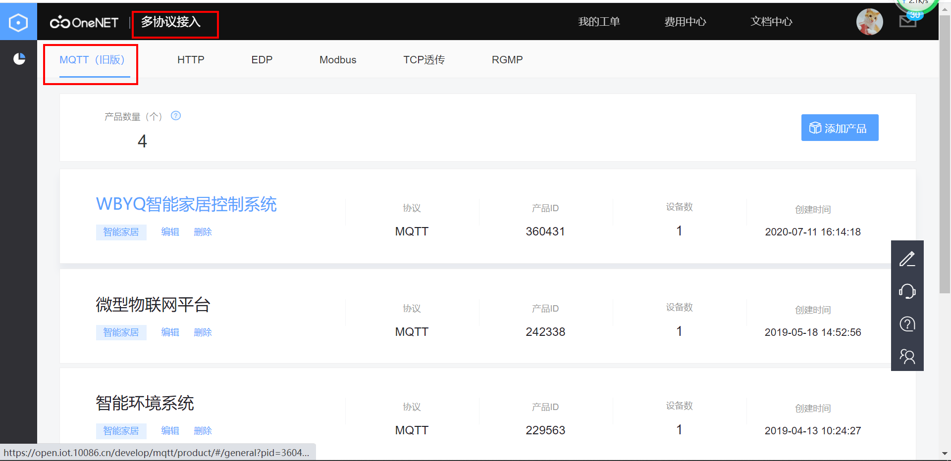 MQTT协议采用OneNet的旧版协议,登录OneNet控制台创建应用时要选择旧版本。