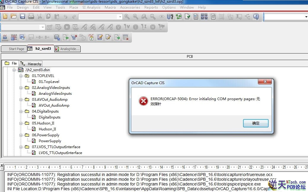 在WIN7 64位系统下Cadence16.6中OrCAD Capture CIS导网表时,很多人都碰到过出现“ERROR(ORCAP-5004):Error initializing COM property pages:无效指针”这个错误,本人正好也喷到的此问题,参照了网上很多相关的方法,依然存在问题,最后不断看帖,终于找到了具体办法,在此特地详细写出实际的解决步骤,方便碰到同样问题的人及时解决,具体如下:
