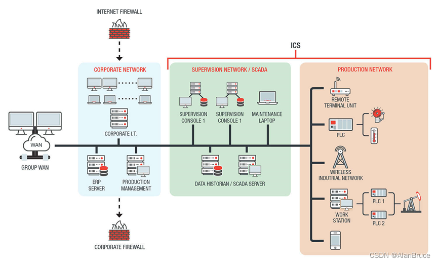 ICS环境的实际应用通常可能是DCS和SCADA的混合,两个系统的功能共同服务于实际场景。