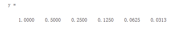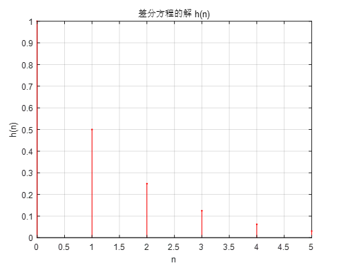 %输入单位抽样序列,取其长度为6,,差分方程为y(n)-0.5y(n-1)=x(n)。