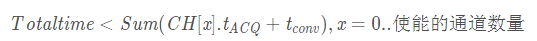 扫描模式是按照顺序采样一系列通道。Sample delay between channels is tack + tconv