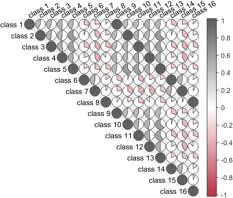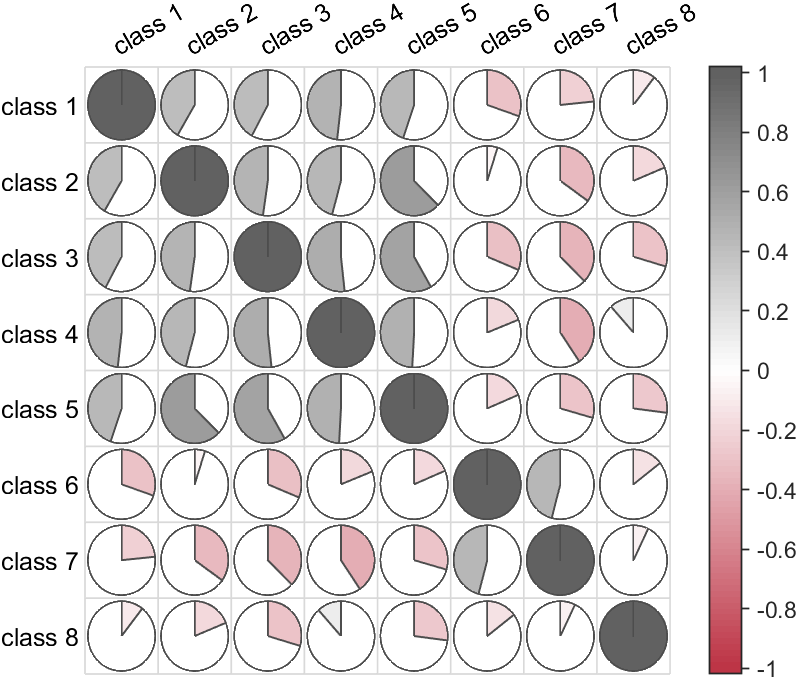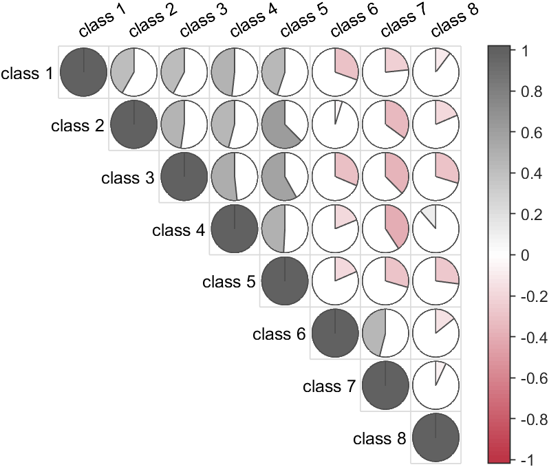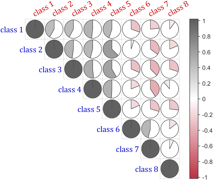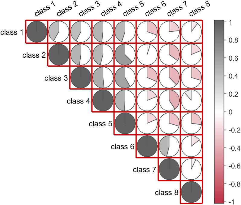 CMP=corrMatPlot(X,'Type','pie');