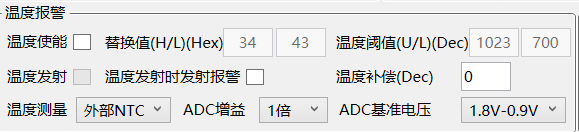 温度补偿默认选择0即可。ADC增益建议客户选择1倍。ADC基准电压建议使用1.2V-0。