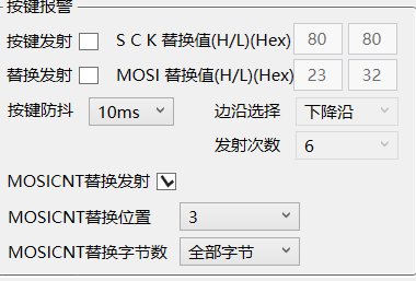 MOSICNT替换发射勾选时,即使用了芯片的计数(步)功能。替换位置是替换的字节位置,可自行选择,不可超过设定的负载长度。