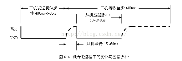 初始化过程 = 复位脉冲 + 从机应答脉冲。