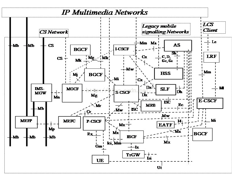| IM-MGW | IP Multimedia Gateway | IP多媒体网关 | IM-MGW负责IMS与PSTN/CS域之间的媒体流互通,提供CS CN网络和IMS之间的用户面链路,支持PSTN/电路域TDM承载和IMS用户IP承载的转换。主要功能是承载和媒体处理。在IMS终端不支持CS端编码时IM-MGW完成编解码的转换工作。IM-MGW也可以在MGCF的控制下完成呼叫的连续。 |