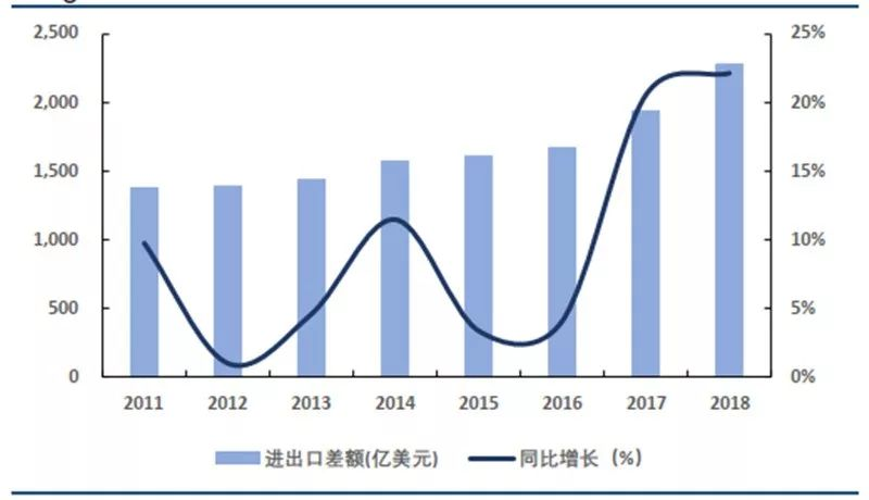 市场总体呈现产业规模与贸易逆差“双增” 的现状。我国半导体产业起步时间相比于发达国家落后近 30 年, 但随着市场化进程加快,目前产业规模增速远高于全球增速, 连续多年保持两位数以上。可以看出,整体的产业链在向国内转移,同时国内需求也在逐年上升。