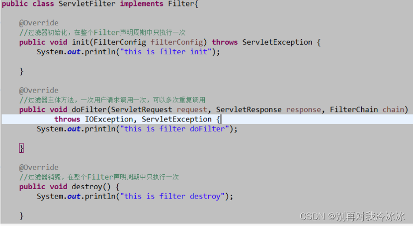 Filter的三个接口方法:
