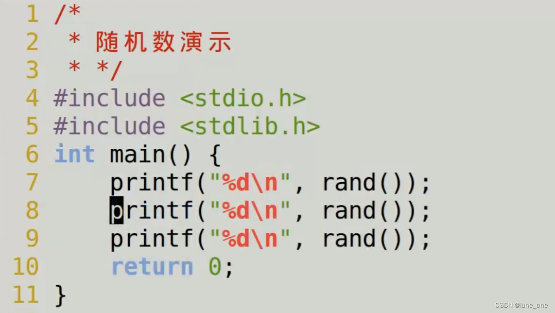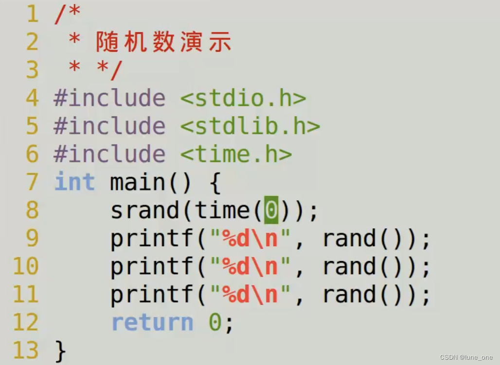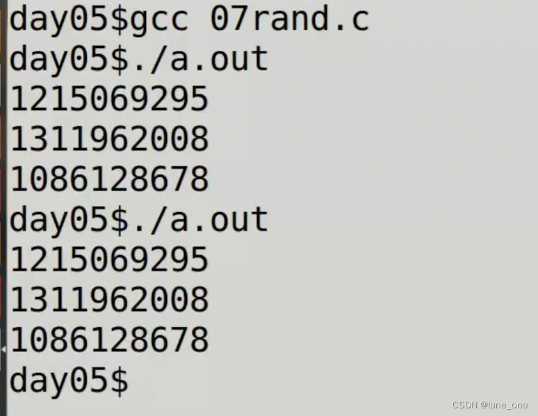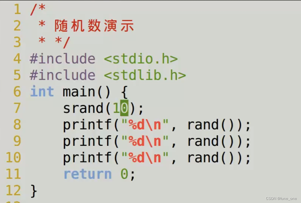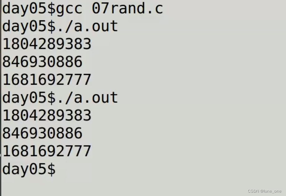这个函数需要一个整数作为种子使用。不同的种子得到的随机数不同。