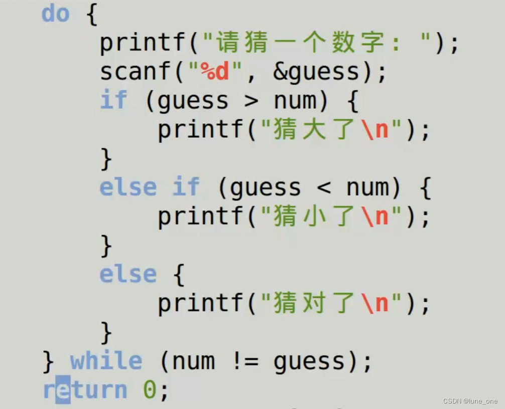 这个结构表示反复执行大括号里面的语句,直到逻辑表达式的结果为假。