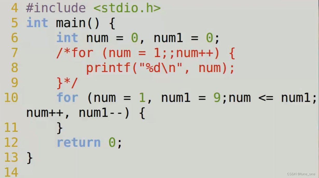 for循环小括号里前面和后面的部分,可以是用逗号连接的多条语句。