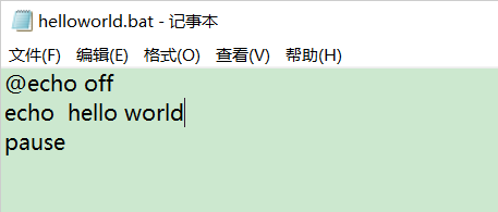 1、建立helloworld.txt文件,并输入如下内容,然后将文件后缀修改为bat。