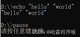 (3)只想打印结果,不想显示回显,可以用@echo off