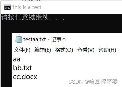 dir /b %curdir%>>testaa.txt