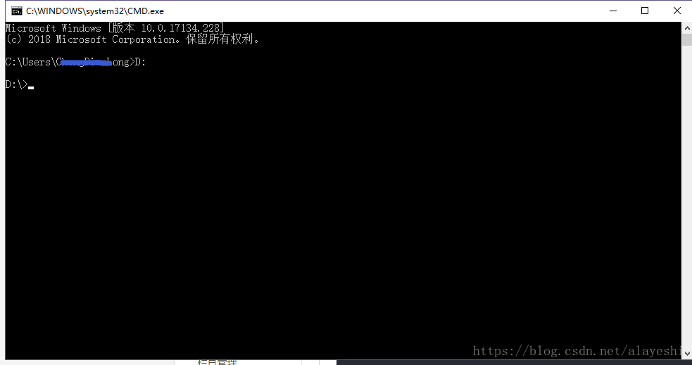 进入某个盘只要输入盘的符号,在后面加冒号就可以,例如我要从C盘进入D盘,直接输入D:就可以。如图;