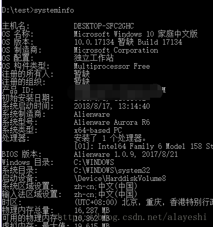 systeminfo 是查看电脑和系统的信息,包括开机时间。老夫每天用它来查看系统启动时间,开机时间就是老夫的上班时间,准点下班哈哈哈哈。