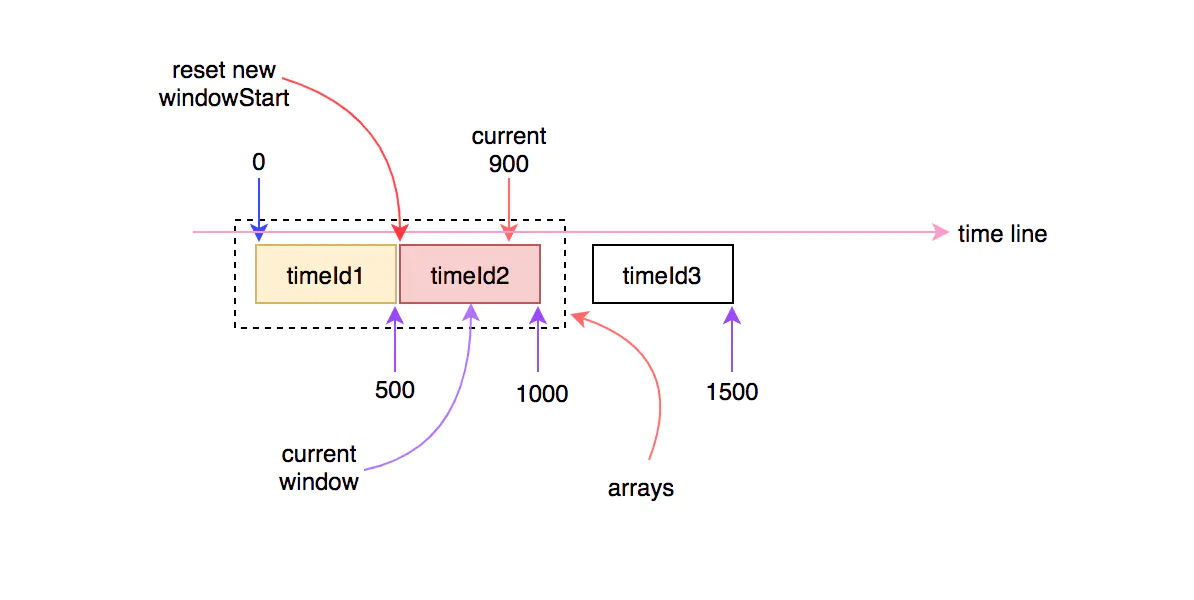 时间继续往前走,当超过500ms时,时间窗口就会向前滑动到下一个,这时就会更新当前窗口的开始时间: