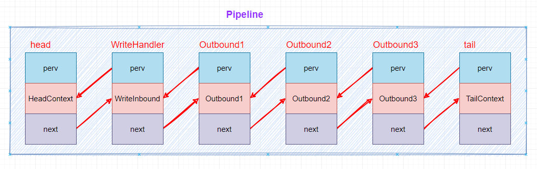 Outbound 的处理流程与 Inbound 的流程是相反的,在 Inbound 中处理是获取 next 节点执行,而在 Outbound 节点中获取的确是 prev 节点的重写方法执行。所以这里的执行顺序会变成跟添加顺序相反的顺序执行。