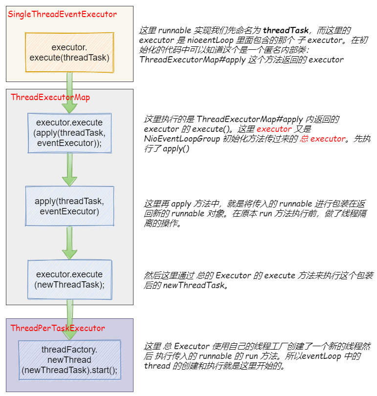 Inbound 执行过程的代码以 channelRead 为例就说到这,然后现在看着代码再结合上面的图大家应该很清楚整个执行的流程。