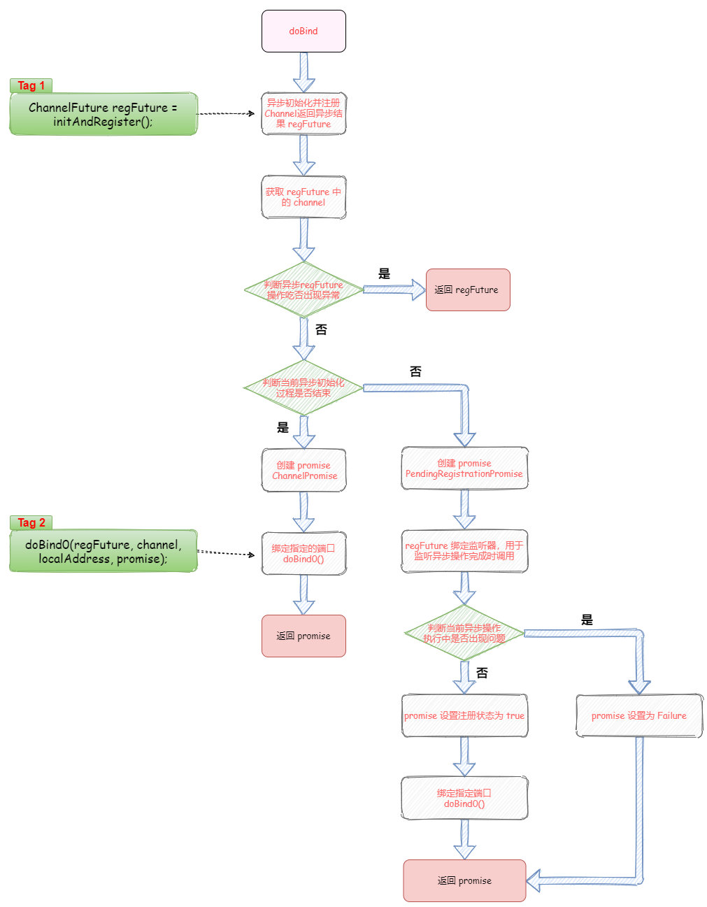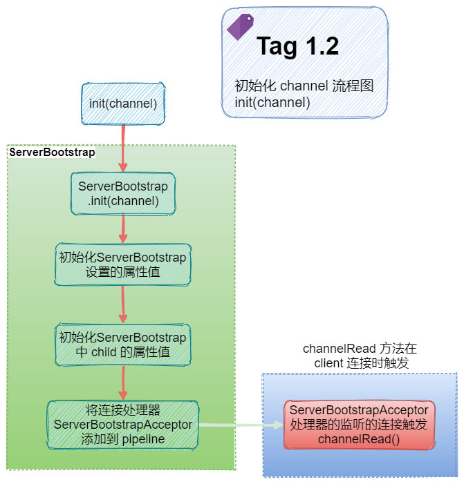 ServerBootstrap 是服务端的引导类,ServerBootstarp 在调用 bind() 方法时会创建一个 ServerChannel 来接受来自客户端的连接,并且该 ServerChannel 管理了多个子 Channel 用于同客户端之间的通信。