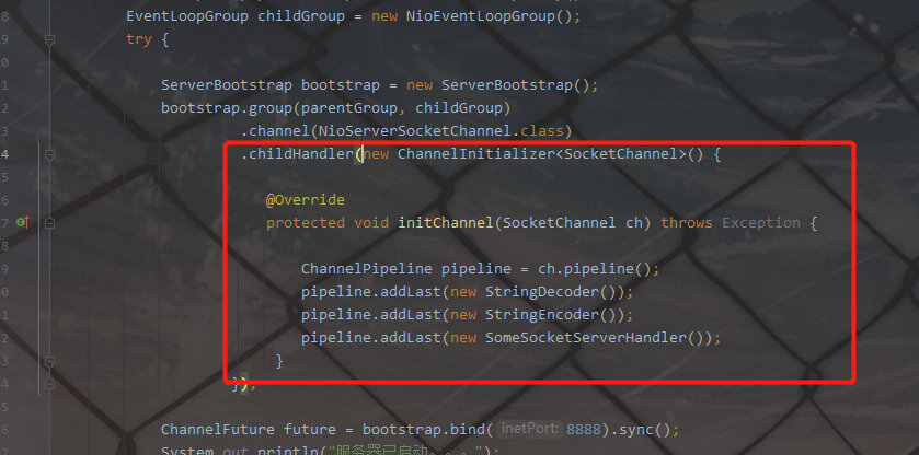 ChannelFuture future = bootstrap.bind(8888).sync();