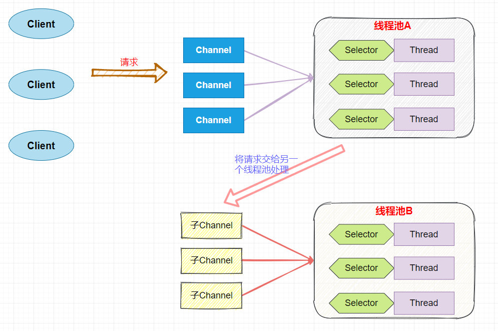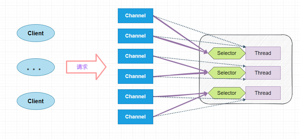 - 一个线程可以处理多个通道,减少线程创建数量;