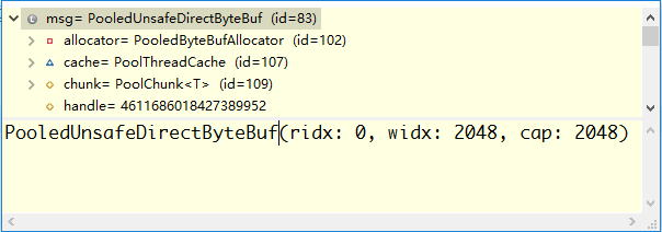 通过调试,我们可以看到(DatagramPacket msg) 默认writerIndex=2048: