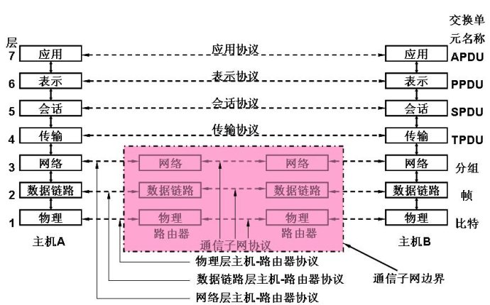 这张图看起来确实复杂,让我们分解来看,主机A和主机B都的进程都分七层处理,下面首先了解下各层什么作用。