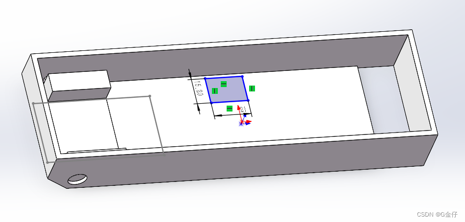 首先对底盘内部空间进行建模,数据可以略微小于底盘内部实际宽度,这一步是为了方便后续设计以及购买模块的时候经行空间管理: