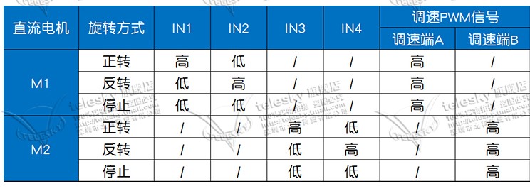 这个是我从淘宝上下载下来的,其中12V供电即为7-12V的输入,如果你的电源电压是7-12V的话那么从这里输入,供电GND即为接地咯,5V供电的话如果你是5V电源接这里,如果是7-12那么接12v供电,这里会有一个5V的输出可以当一个5V电源。接下来通道A使能即在图上插着跳线帽的,它是输出A的使能端,这里如果不拔下来那么电机将会全速转动,如果想要控制电机的转速那么拔下来,作为pwm的输入端口,in1和in2通过高低电平的接入可以控制电机的正反转。in3、in4和使能端B控制输出B