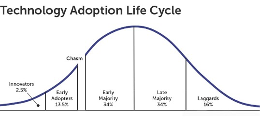 开源软件也是软件的一种,也都是遵循软件的技术采纳规律的。如下图所示: