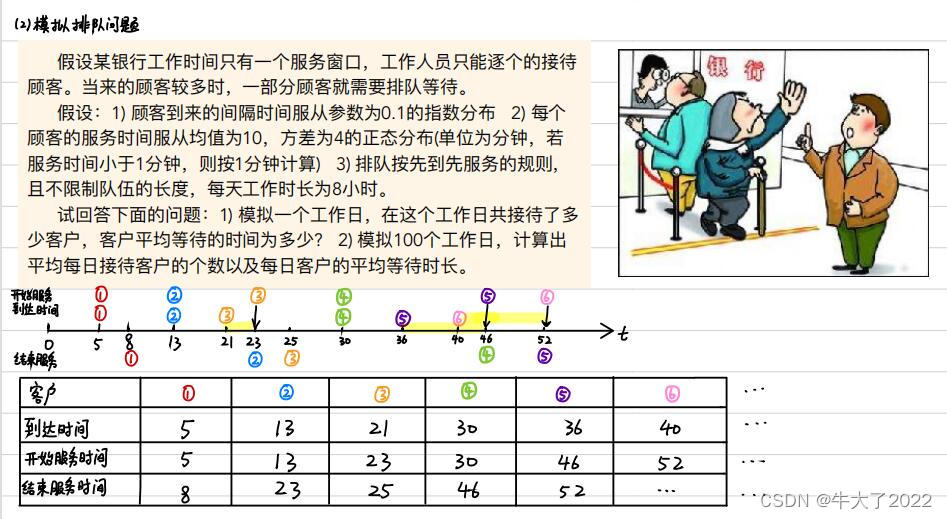 % 第i个客户开始服务的时间取决于该客户的到达时间和上一个客户结束服务的时间