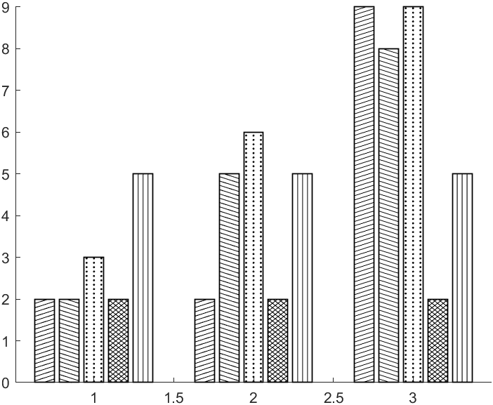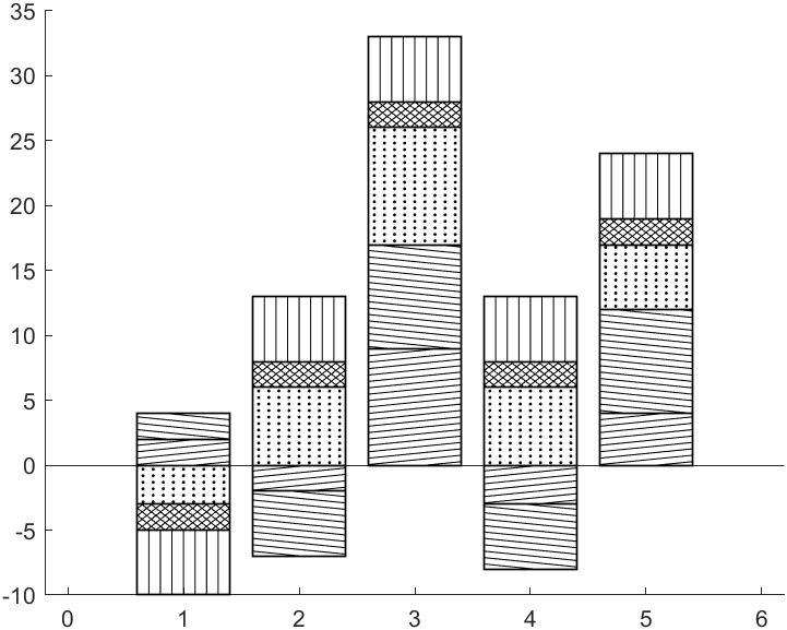 SH=shadowHist(y,'ShadowType',{'/','','.','x','|'},'stacked');