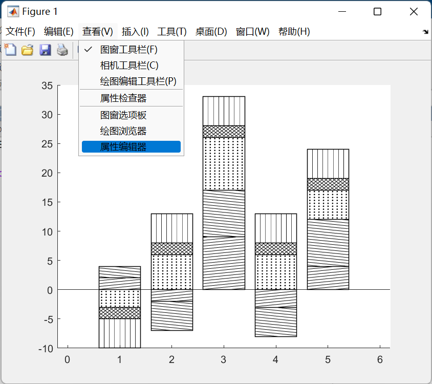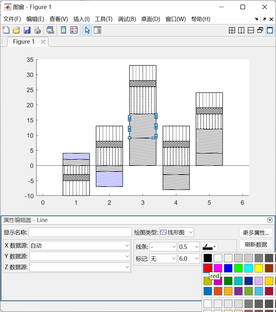 阴影柱状图绘制的代码MATHWORKS上也有,不过是生成图片后,识别图像上不同颜色块并直接修改像素生成阴影线,这样的生成方式不可逆且自由度较低,因此本人开发了一个直接画线条填充的硬画版本。
