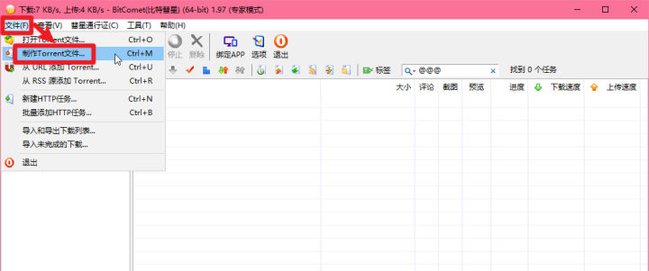 在比特彗星,点击【文件→制作Torrent文件】