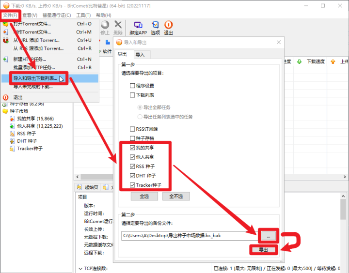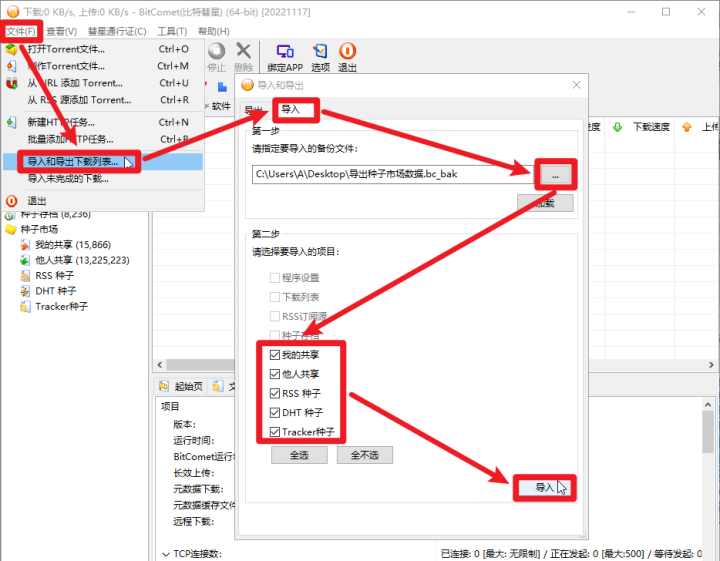(Tracker种子、RSS种子、DHT种子,也是一样,导入什么,才需要选中什么)