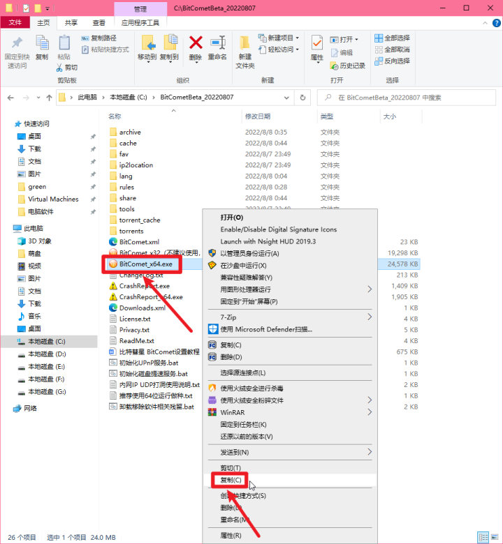 ①复制【BitComet_x64.exe】(如果是32位系统,则复制32位的exe文件)